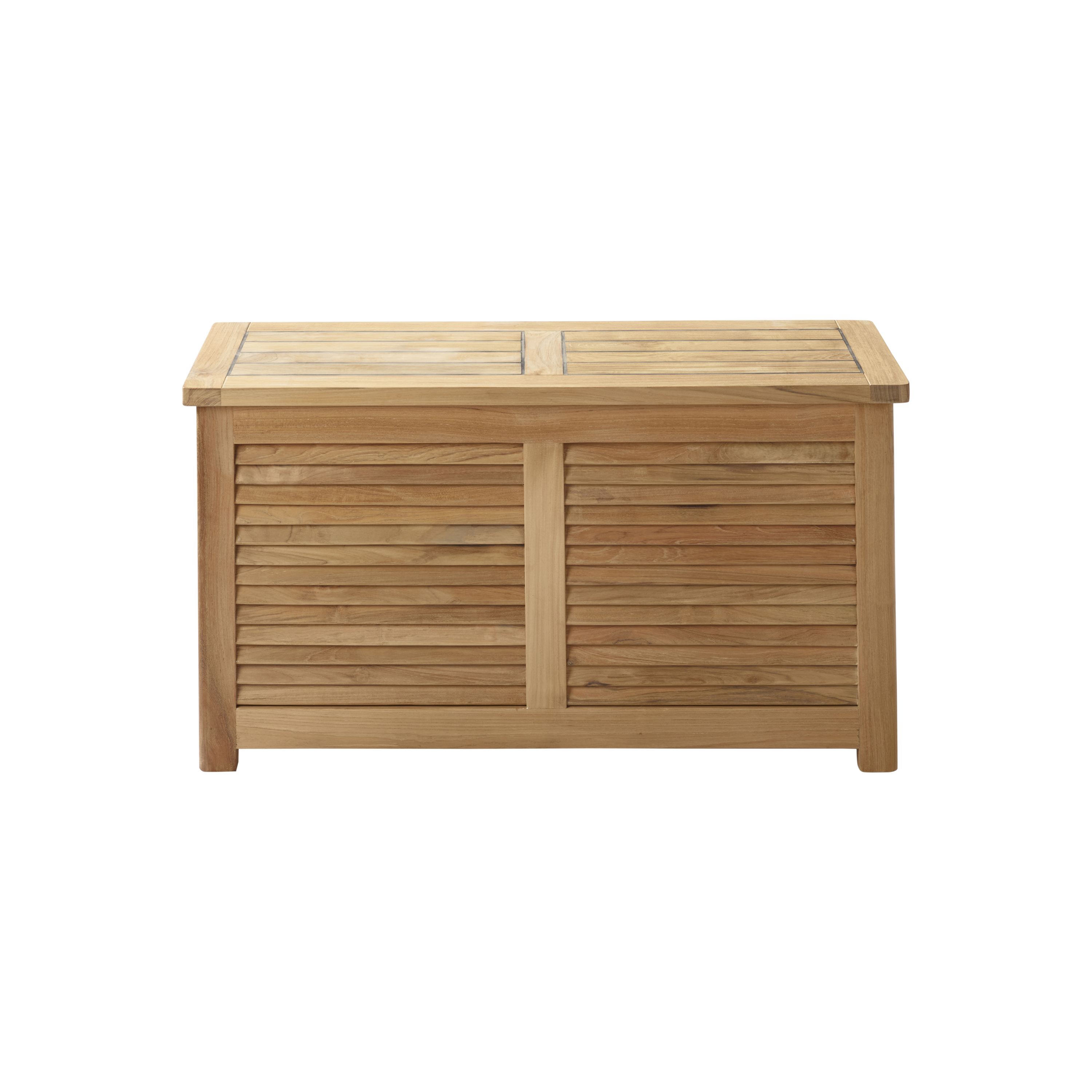 Den klassiska förvaringsbänken i massiv teak är en praktisk och mångsidig lösning som kan användas i hela hemmet – både inomhus och utomhus.