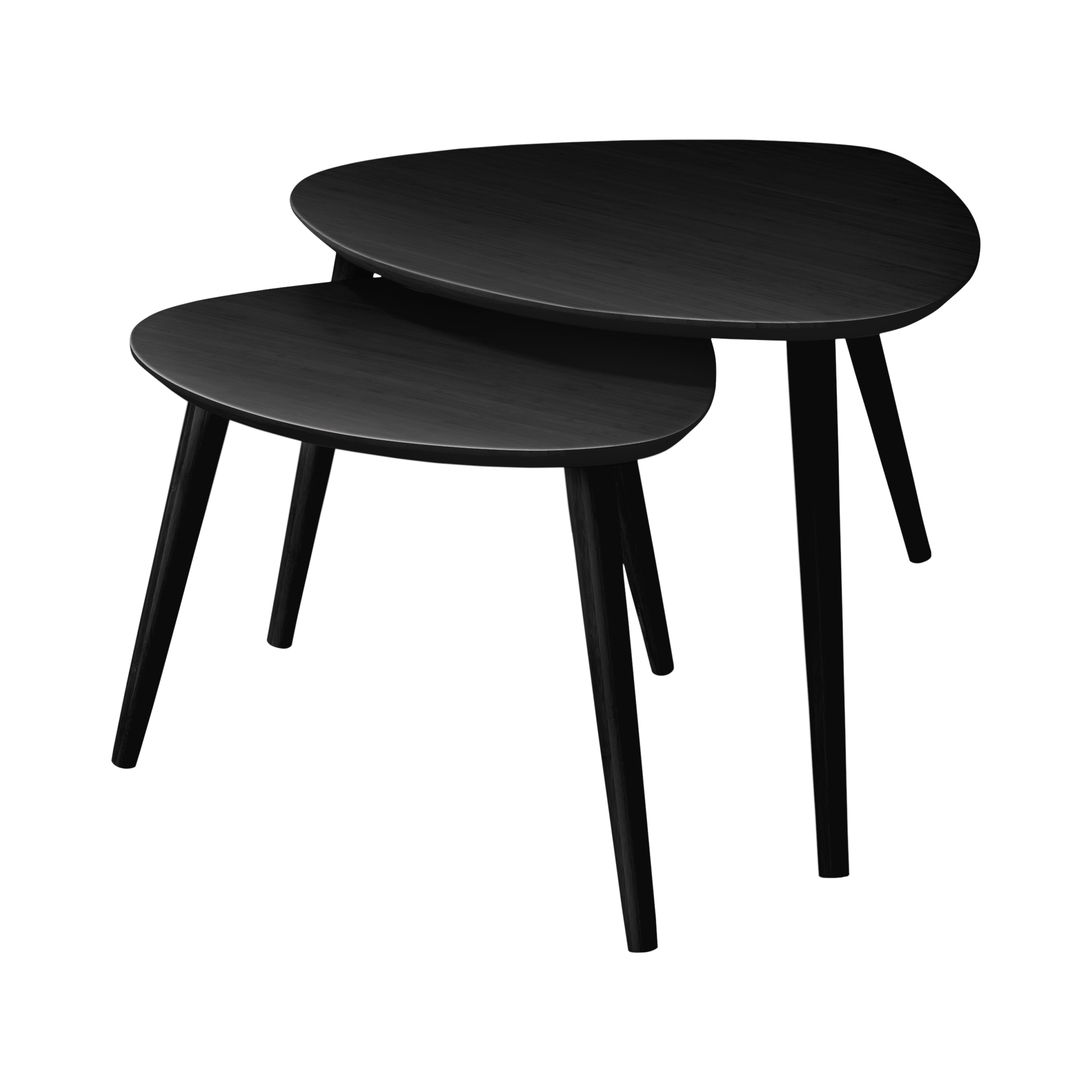 Två satsbord i olika höjder med ett enkelt, organiskt formspråk – flexibla i användning och tillverkade i svartmålad bambu som tillför djup och ett lugnt, grafiskt uttryck.