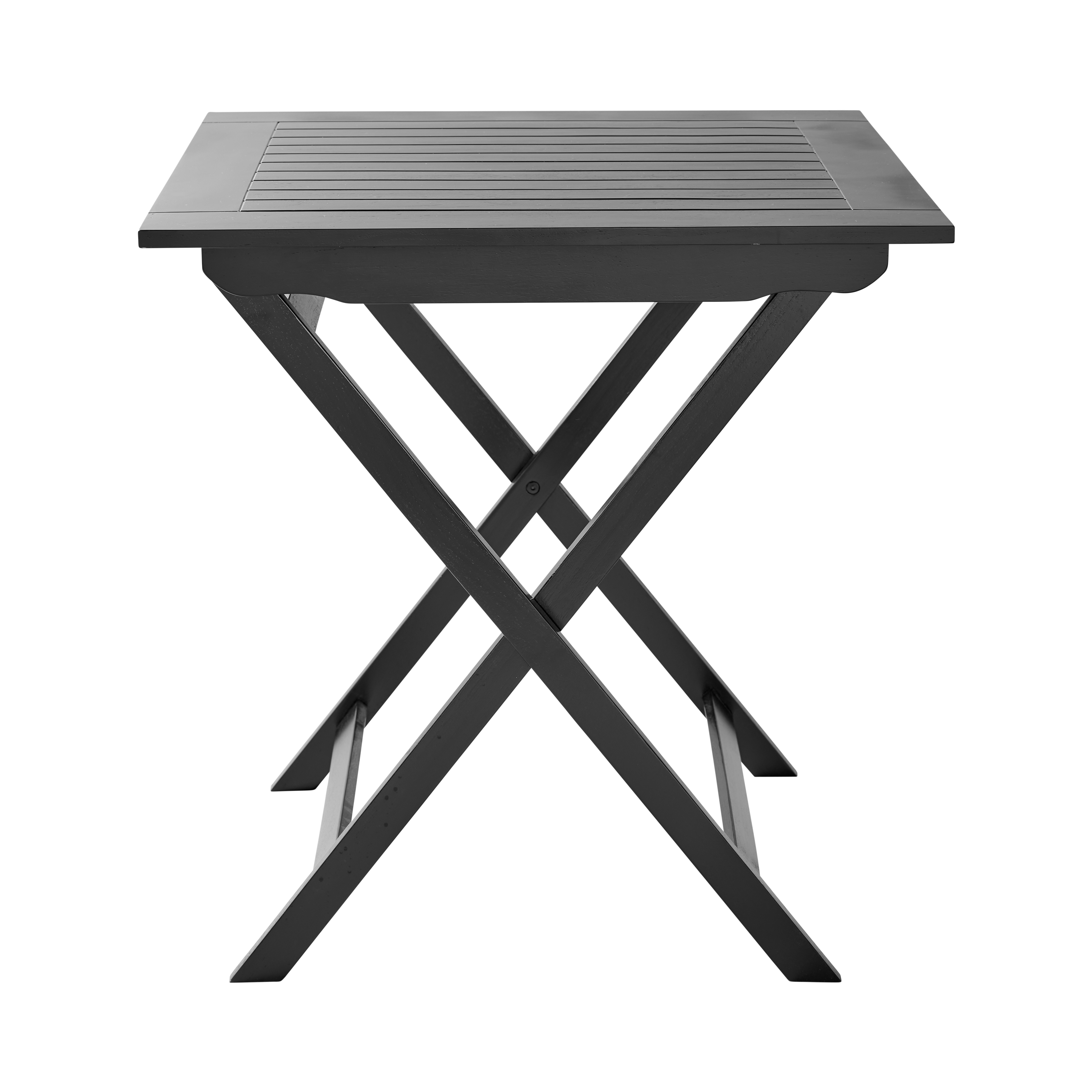 Ett lätt och elegant fällbord i svartmålad mahogny, idealiskt för små balkonger, kompakta terrasser och intima utemiljöer där flexibilitet och nordisk enkelhet står i fokus.