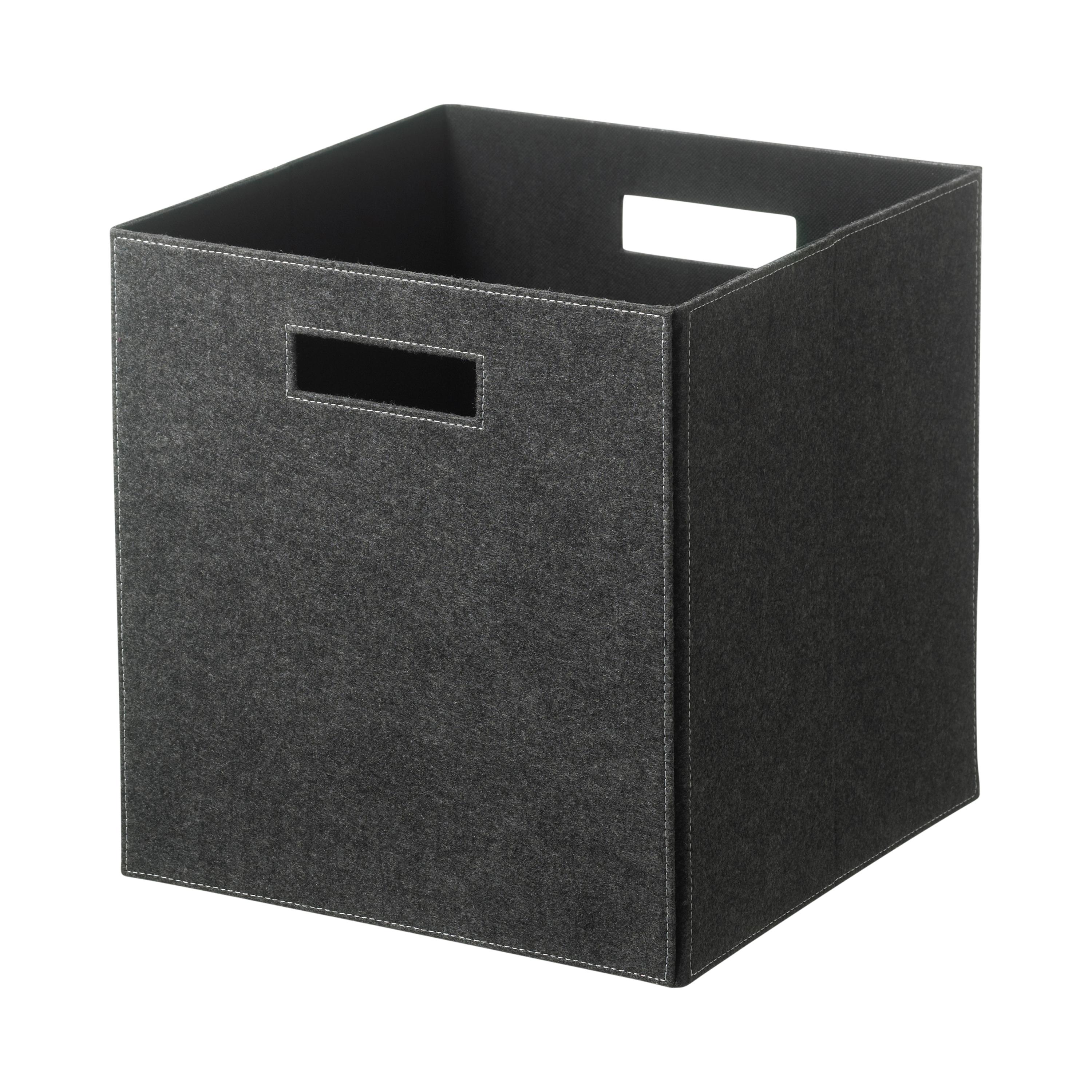 Fin och enkel förvaringslåda i mörkgrått filttyg. Notera att den levereras utan lock.