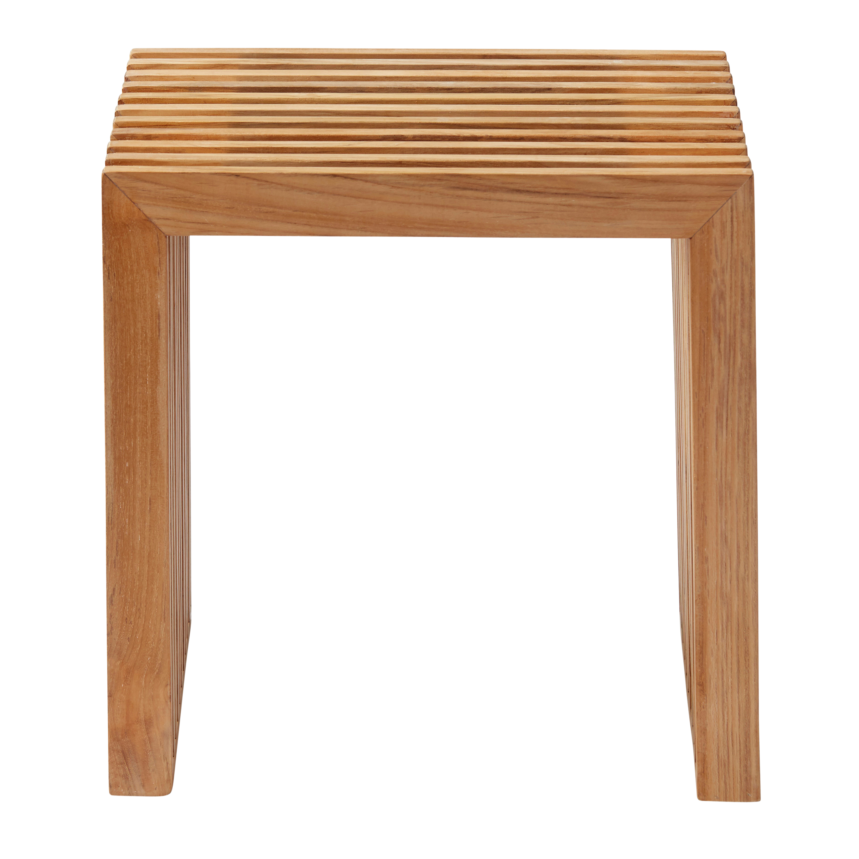 Nordisk enkelhet med en urban twist. Rib pallen i teak tillför värme, funktion och grafisk harmoni till hemmet.