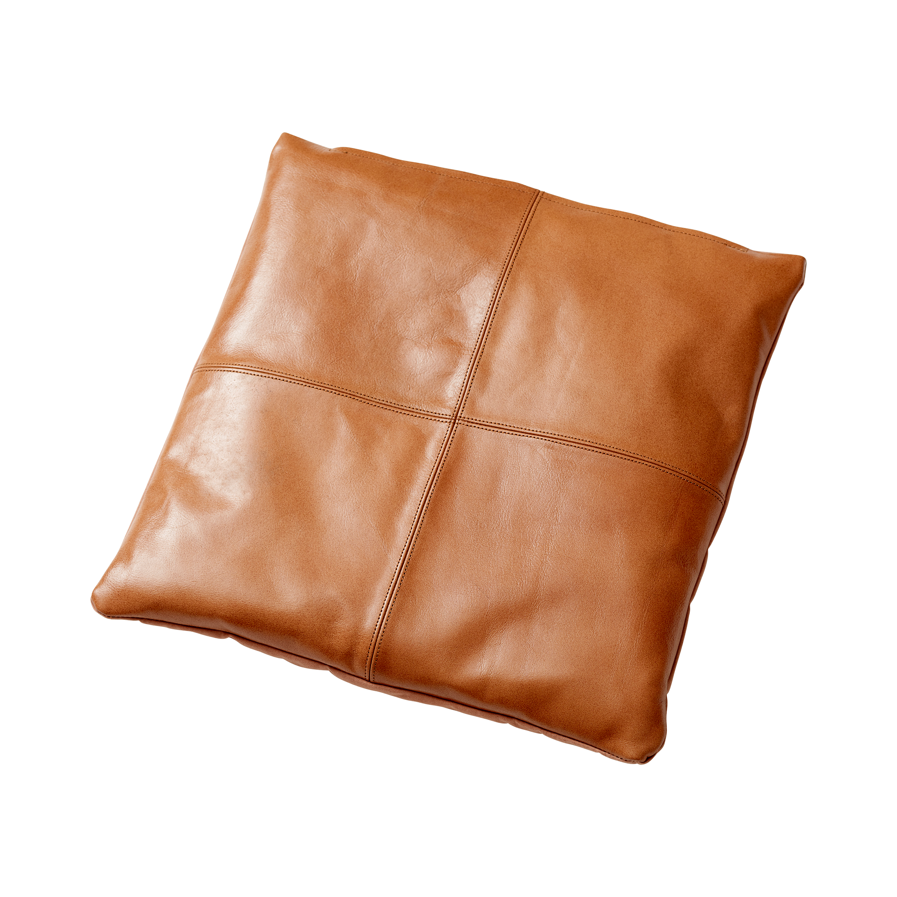 En formsydd sittdyna i ljusbrunt läder, skapad för Noble safaristolen och utformad för att öka komforten.