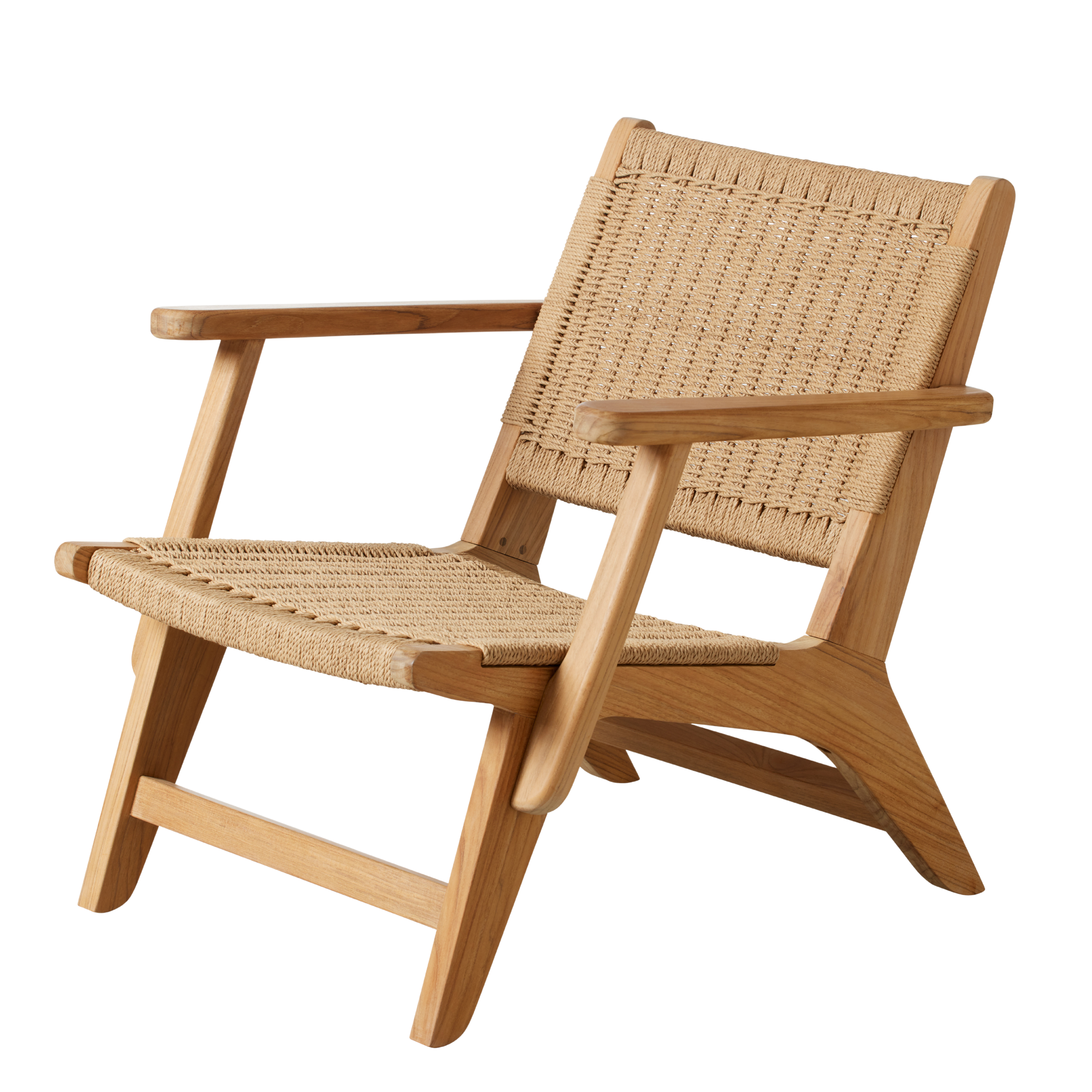 Pappersflätningen ger en behaglig och stödjande sittkomfort, medan teakens varma ton tillför djup och naturlighet. Kombinationen av material gör stolen lätt i sitt uttryck, men samtidigt gedigen i sin konstruktion.