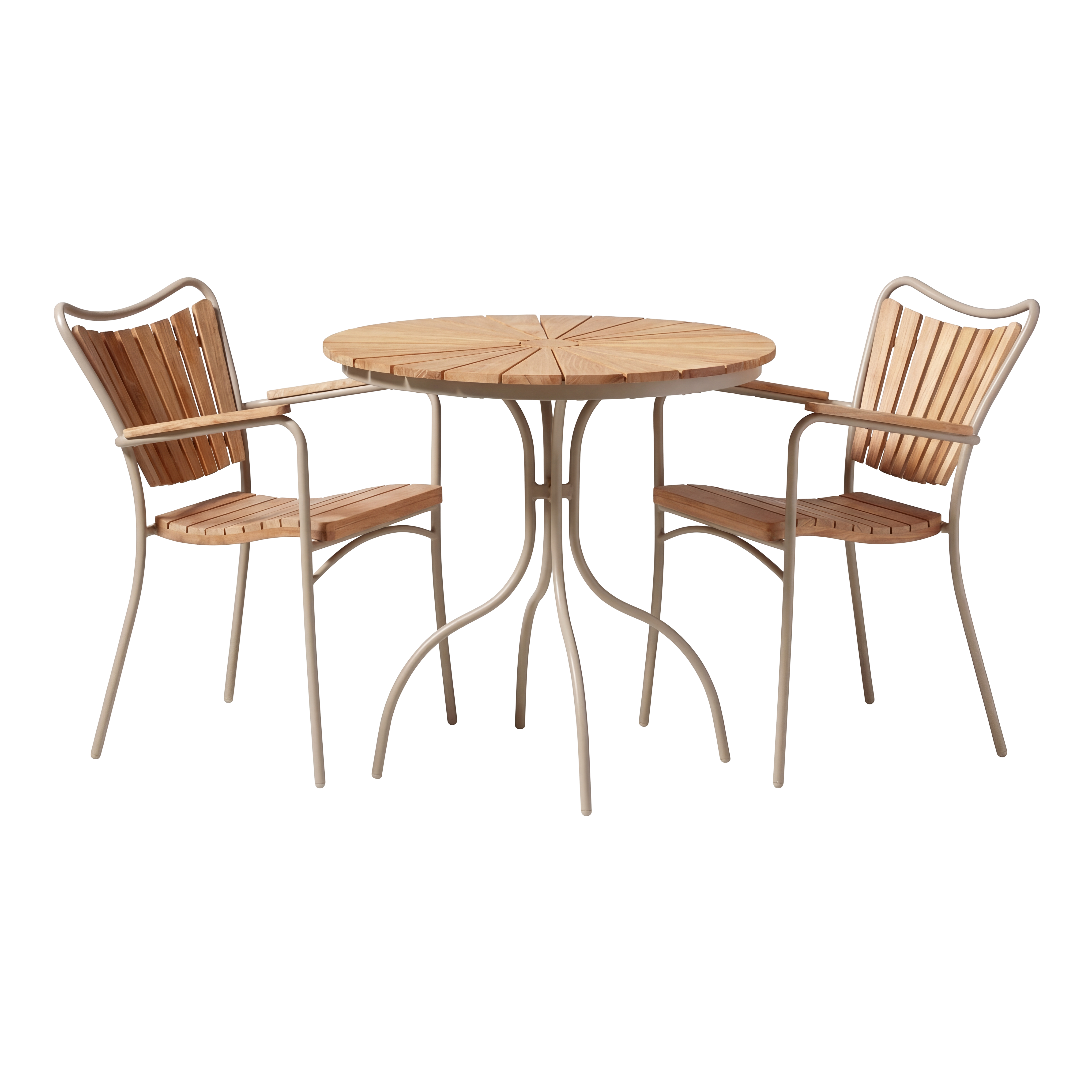 Ett bord för samtal, kaffe och lugn. Ellen cafébordet för ner teakets värme och det klassiska formspråket i en storlek som passar perfekt för balkonger och små uterum – där sommaren levs nära.