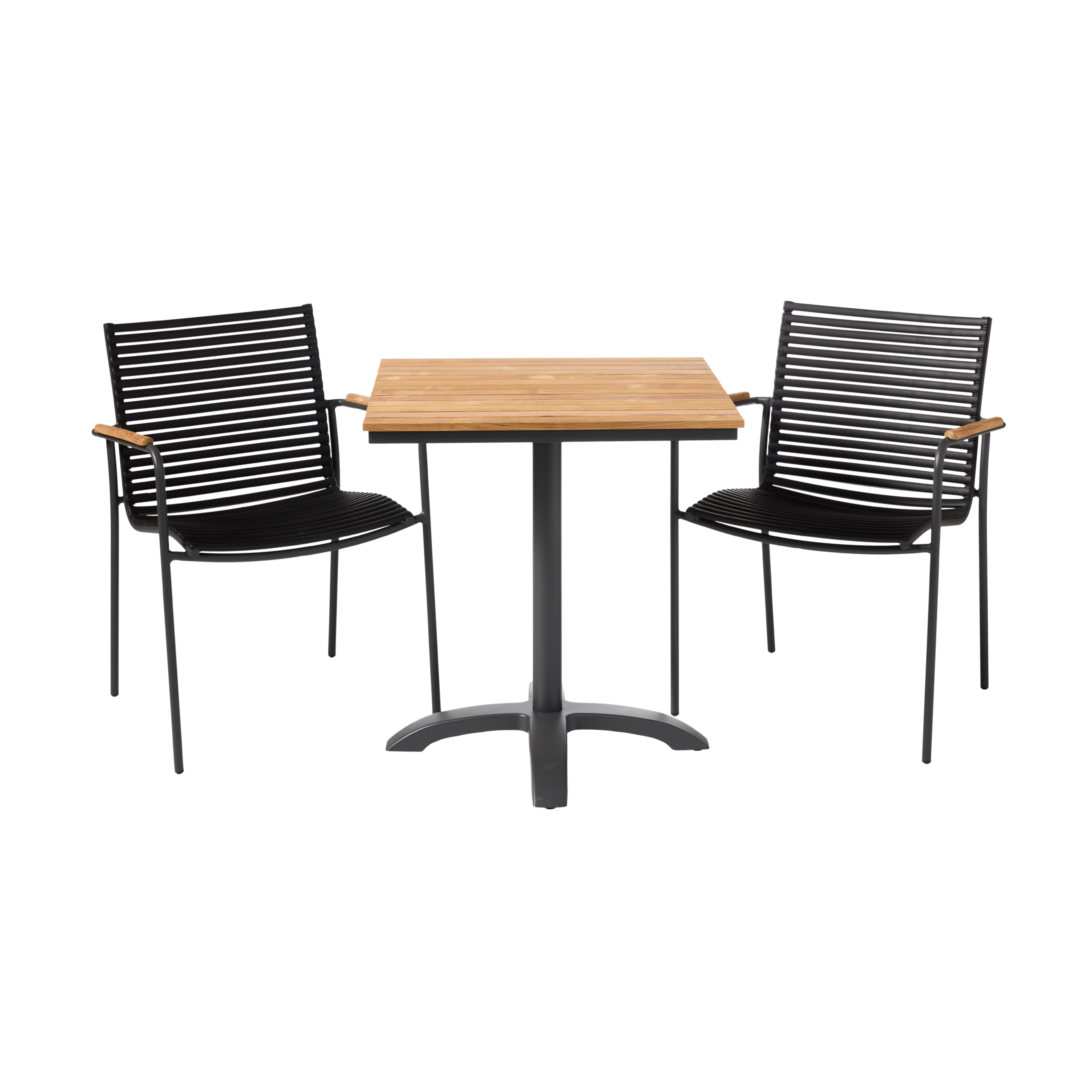 Ein kompaktes und grafisches Café-Set mit klaren Linien – geschaffen für den Balkon, die kleine Terrasse oder urbane Außenbereiche.