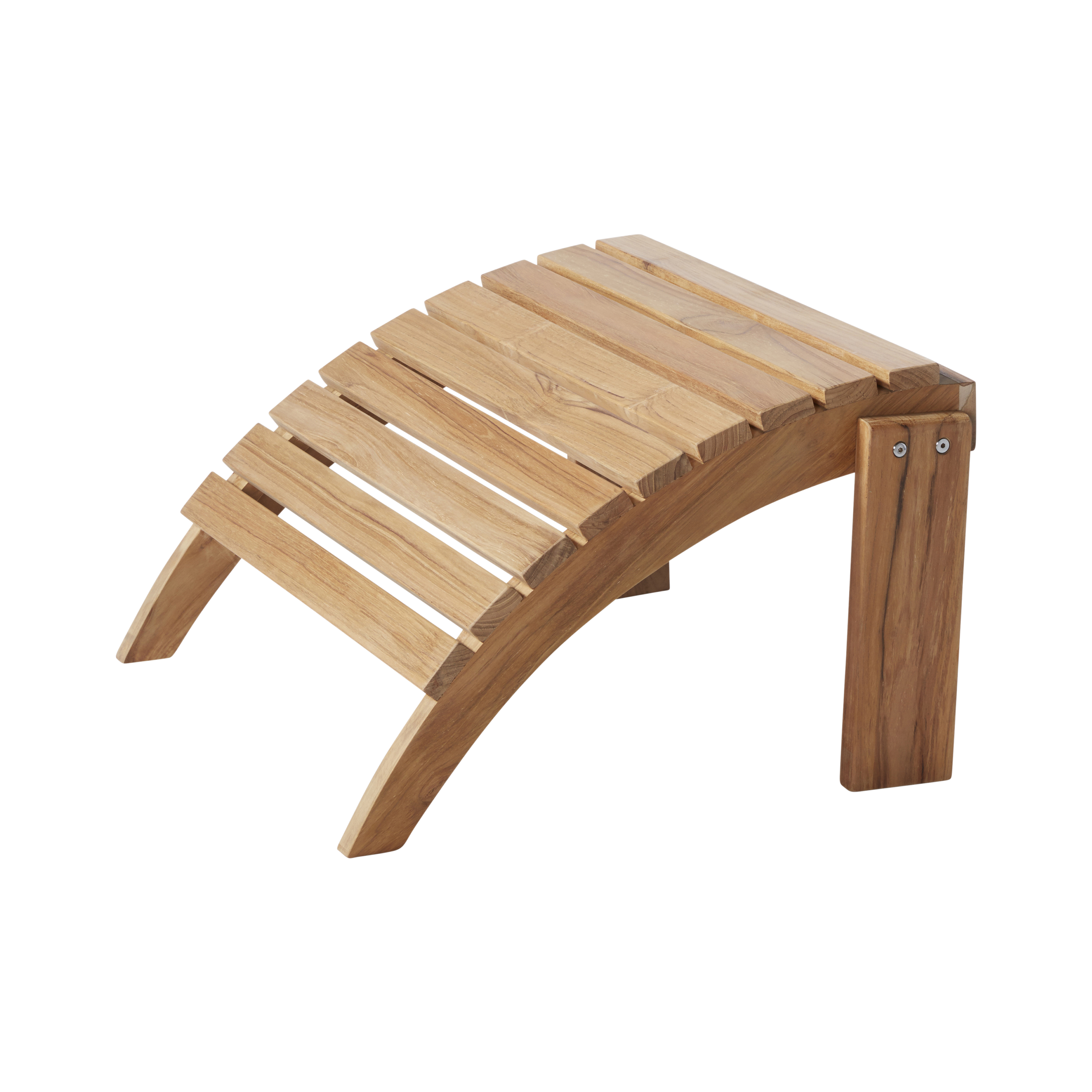 Fotpallen fulländar upplevelsen av Adirondack stolen. Med samma mjuka linjer och solida material ger den plats att sträcka ut benen och njuta av lugnet – här i teak.