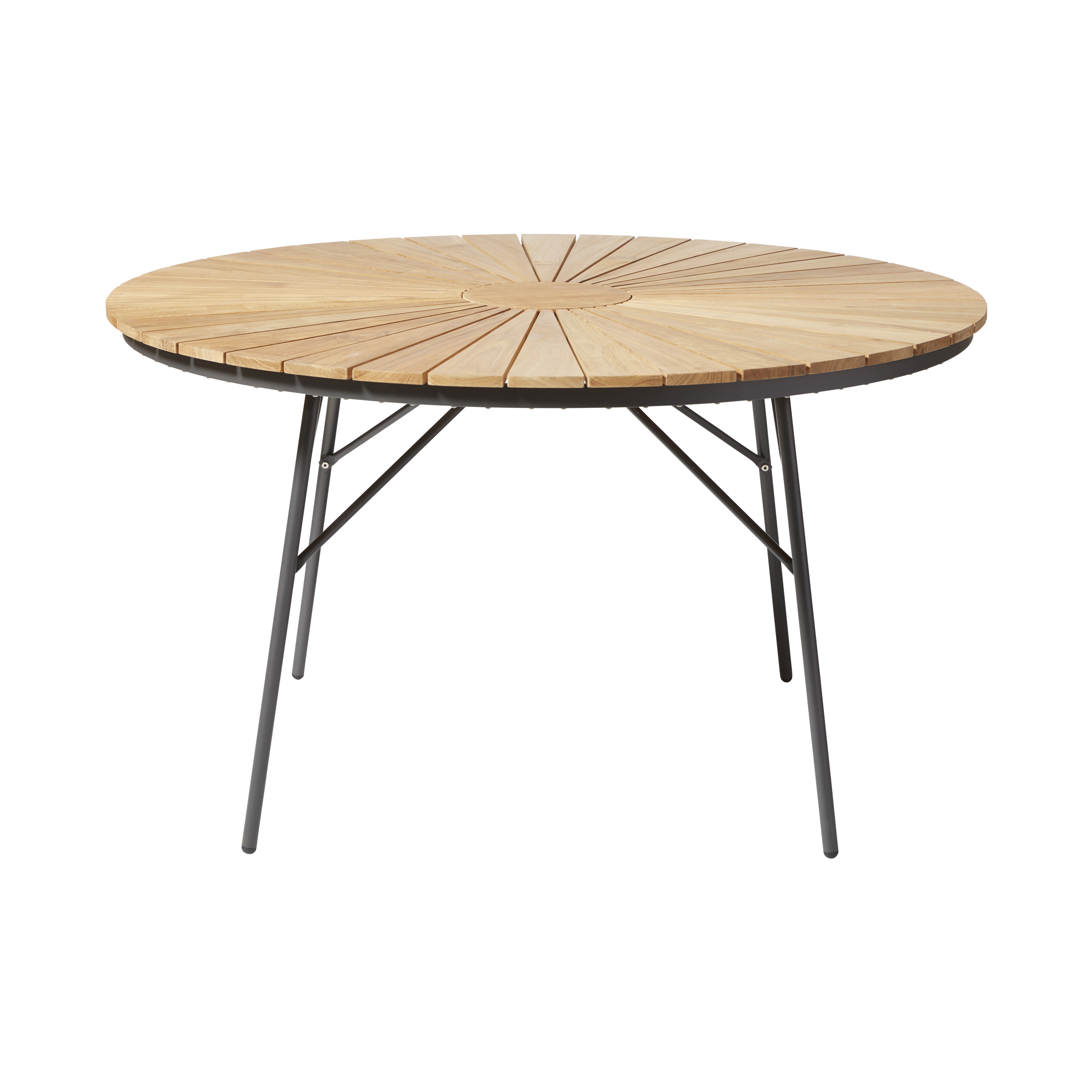 Ellen bordet är seriens naturliga mittpunkt – ett runt bord med lätt och klassiskt uttryck som passar lika bra på terrassen, i sommarhuset eller i trädgården.
