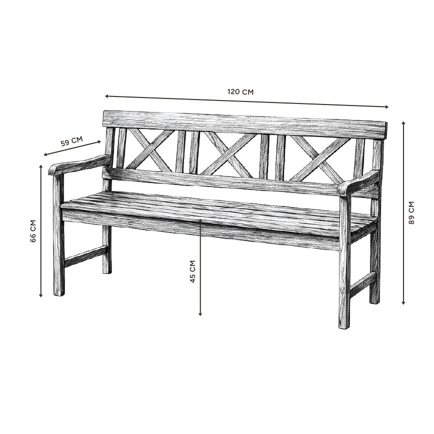 Den lätt lutande ryggen och den breda sittytan ger en avslappnad och behaglig sittupplevelse – perfekt för både måltider, goda samtal och stilla stunder utomhus.