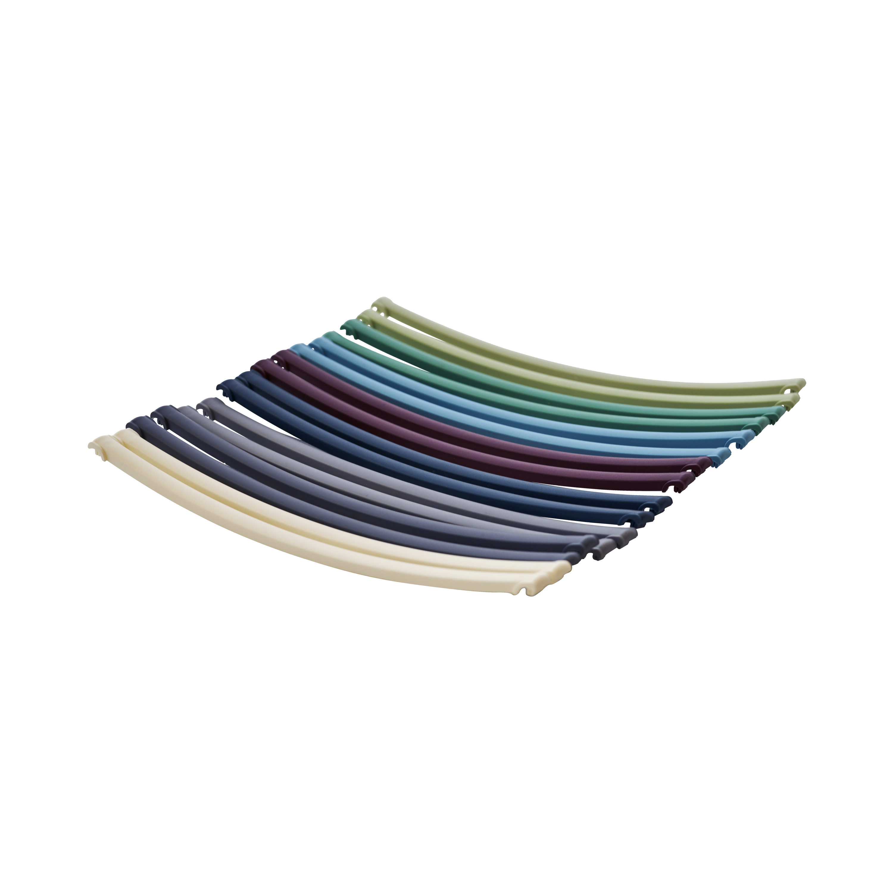 Ett set utbytbara, väderbeständiga lameller i utvalda färger — utvecklat för MOOD Classic-stolarna med smala lameller och levererat som ett komplett set med 16 lameller.