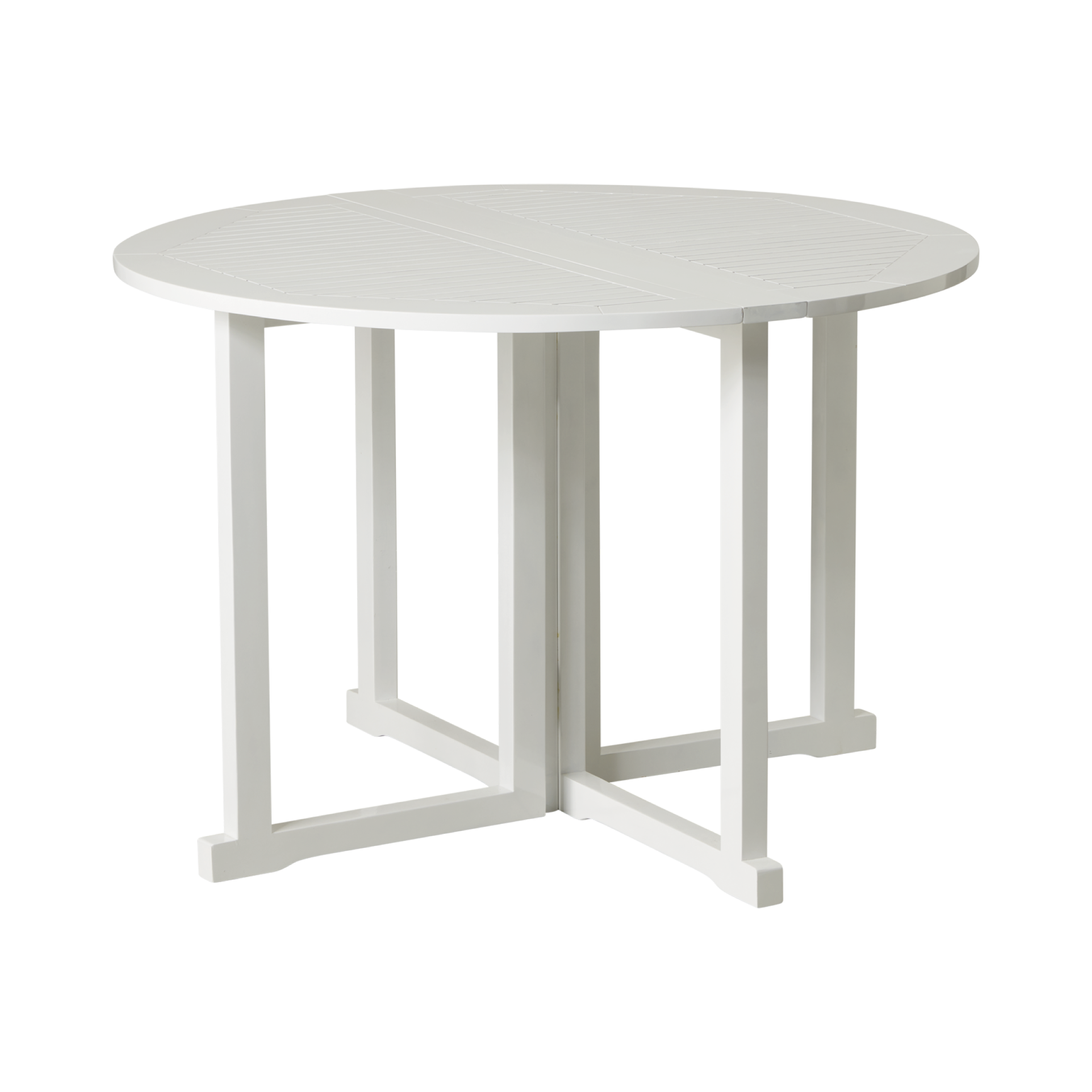 Ett elegant och flexibelt fällbord i vitmålad mahogny — perfekt för små och intima utemiljöer där gemenskap, ljus och ett lätt, inbjudande uttryck går hand i hand.