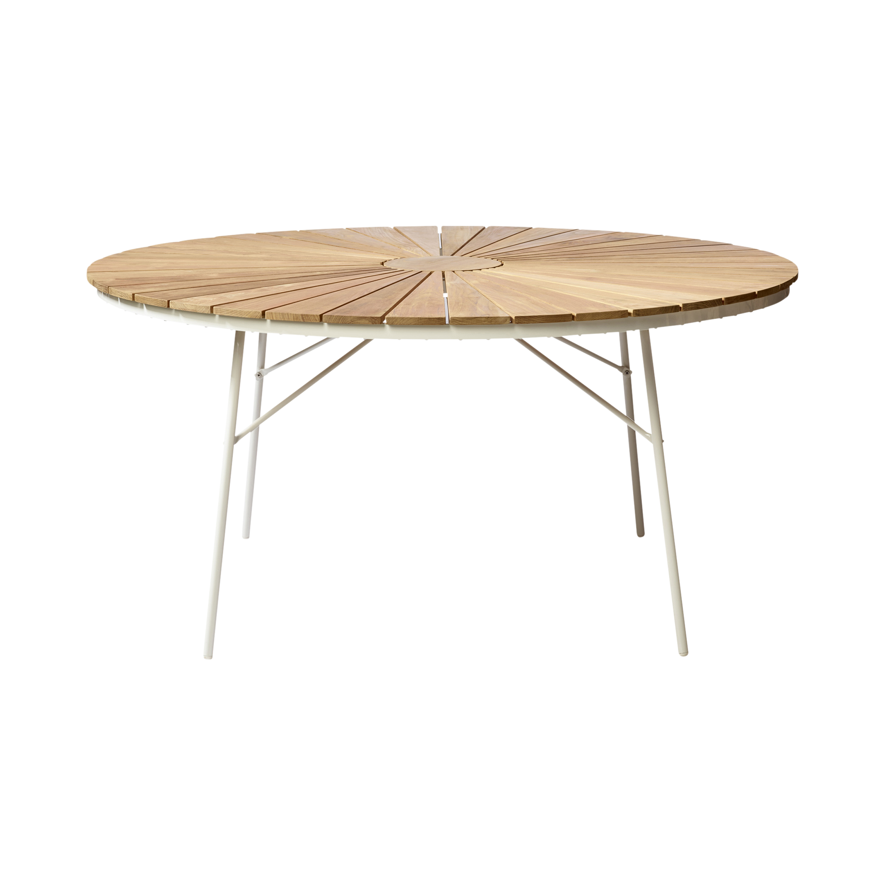 Ellen bordet är den naturliga mittpunkten i serien – ett runt bord med ett lätt och klassiskt uttryck som passar lika bra på terrassen, i sommarhuset eller i trädgården.