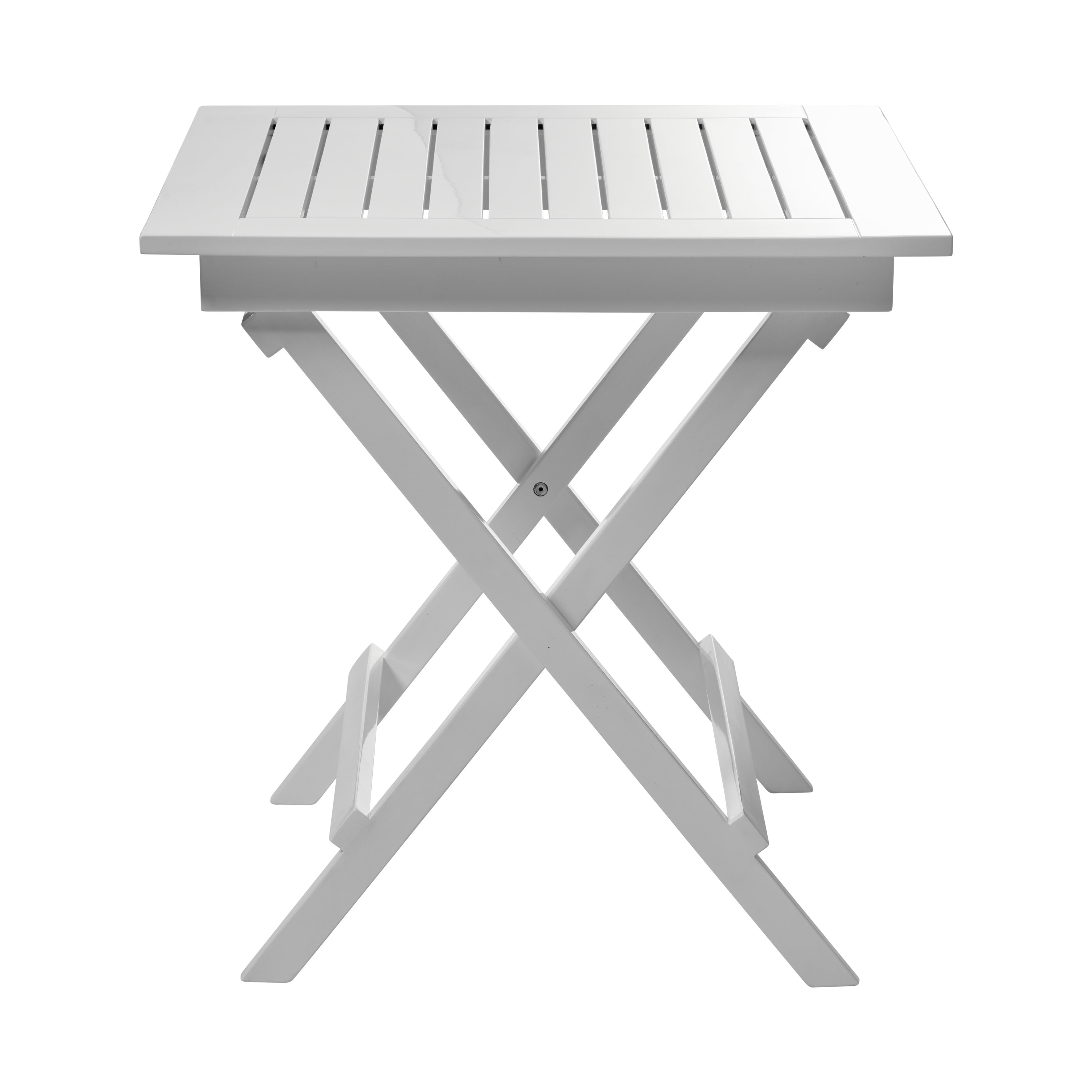 Ett lätt och elegant fällbord i vitmålad mahogny, idealiskt för små balkonger, kompakta terrasser och intima utemiljöer där flexibilitet och nordisk enkelhet står i fokus.