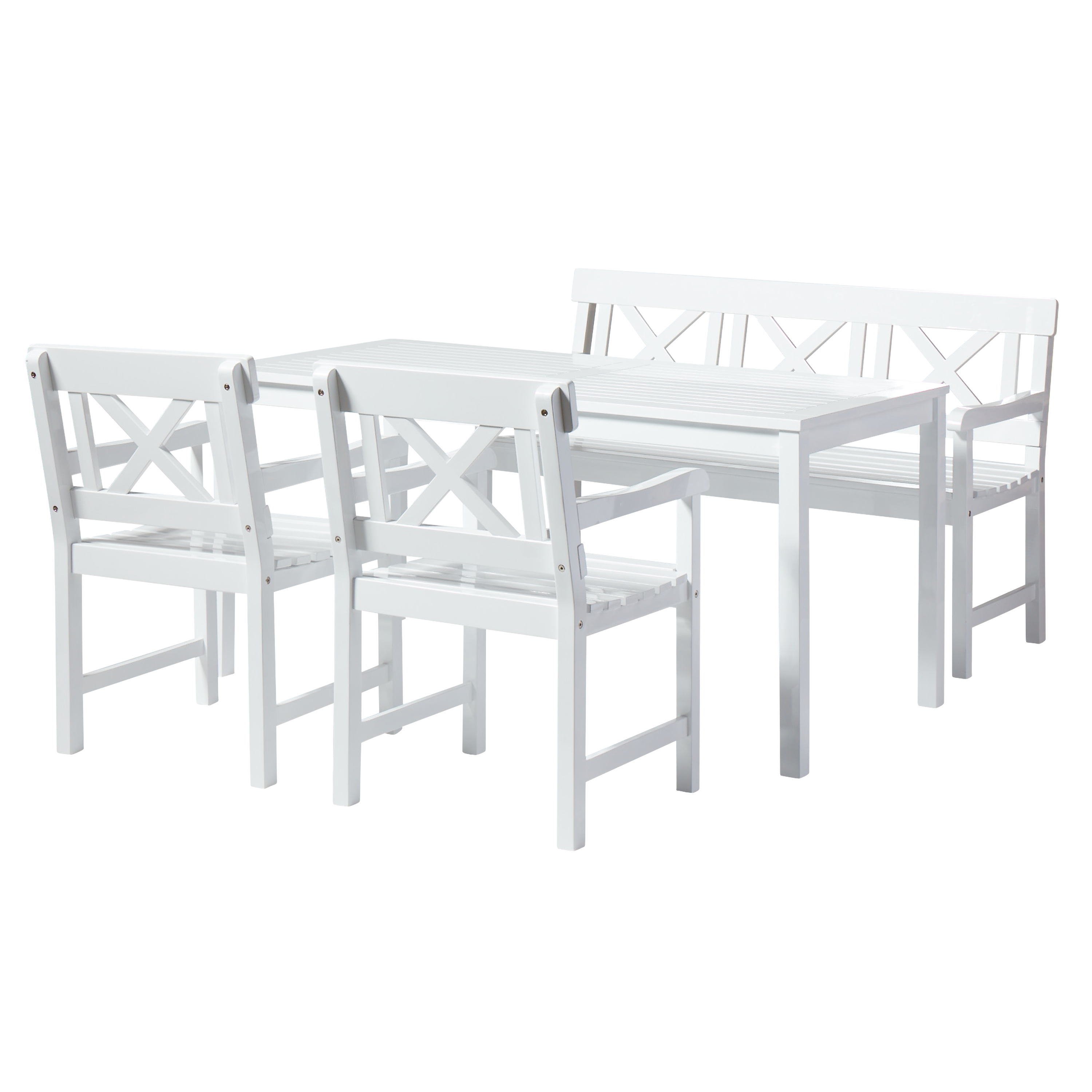 Sofiero set - trepersoners bänk, två stolar & bord - vit