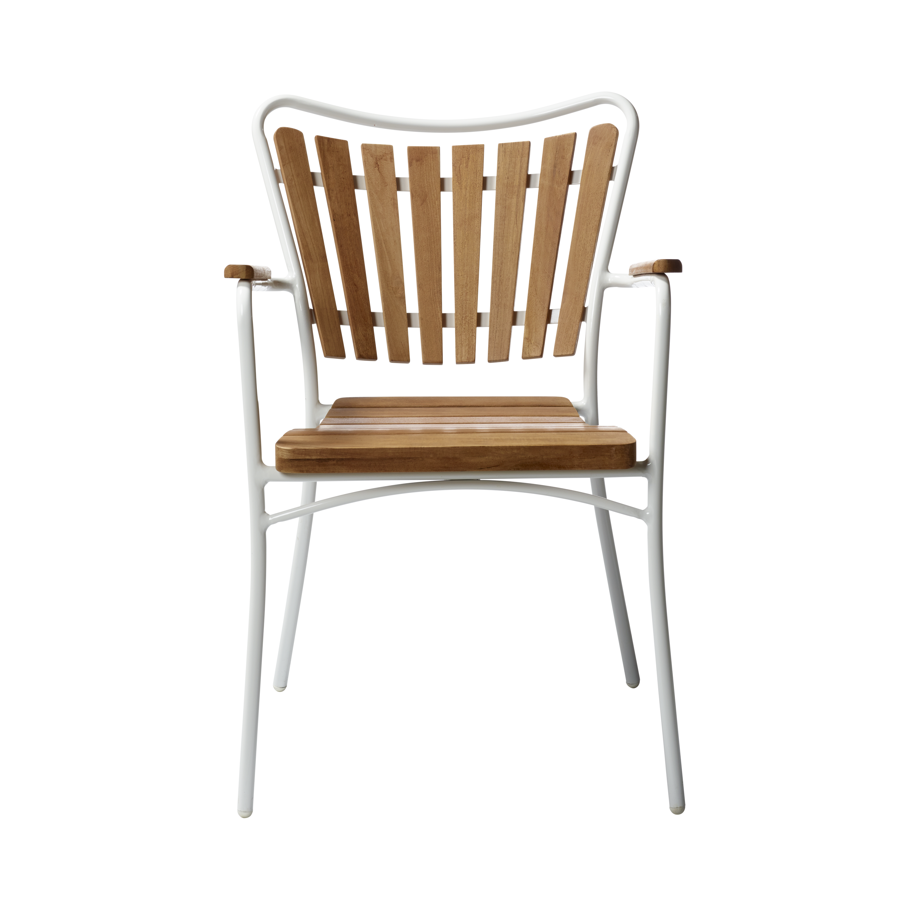 Tillverkad i varma teaklameller och pulverlackerad aluminium – en hållbar och stilren kombination. När den inte används kan stolen enkelt staplas.