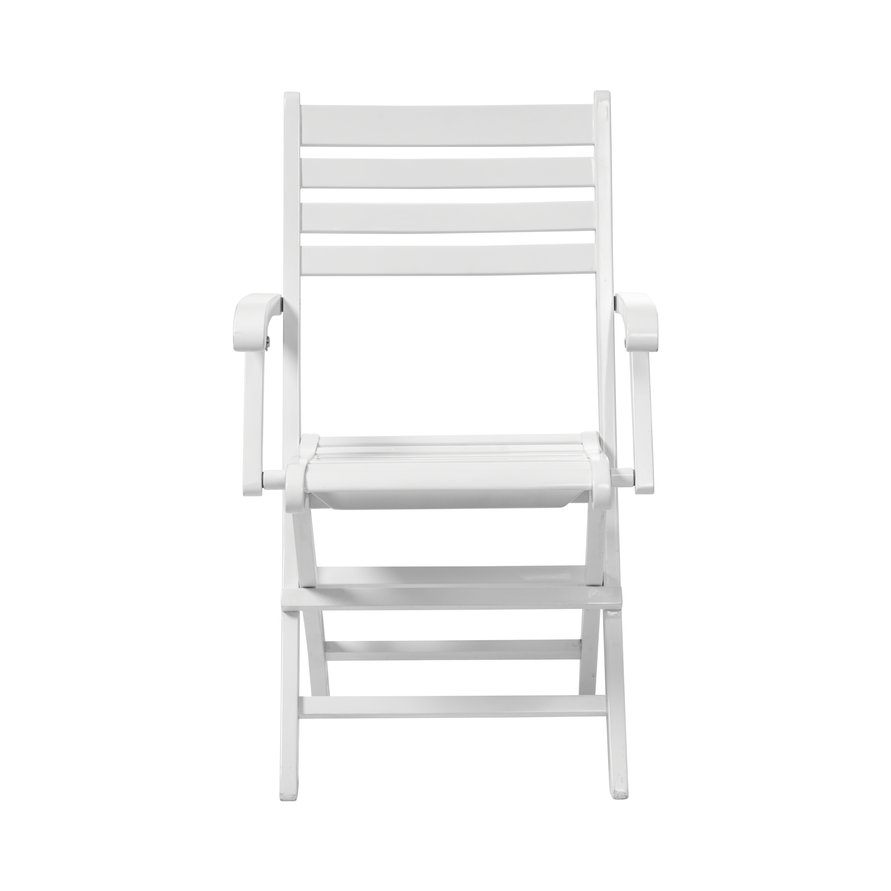 En lätt och harmonisk fällstol i vitmålad mahogny, skapad för uteplatser med begränsat utrymme – från balkonger till små terrasser – där flexibilitet och nordisk enkelhet gör hela skillnaden.